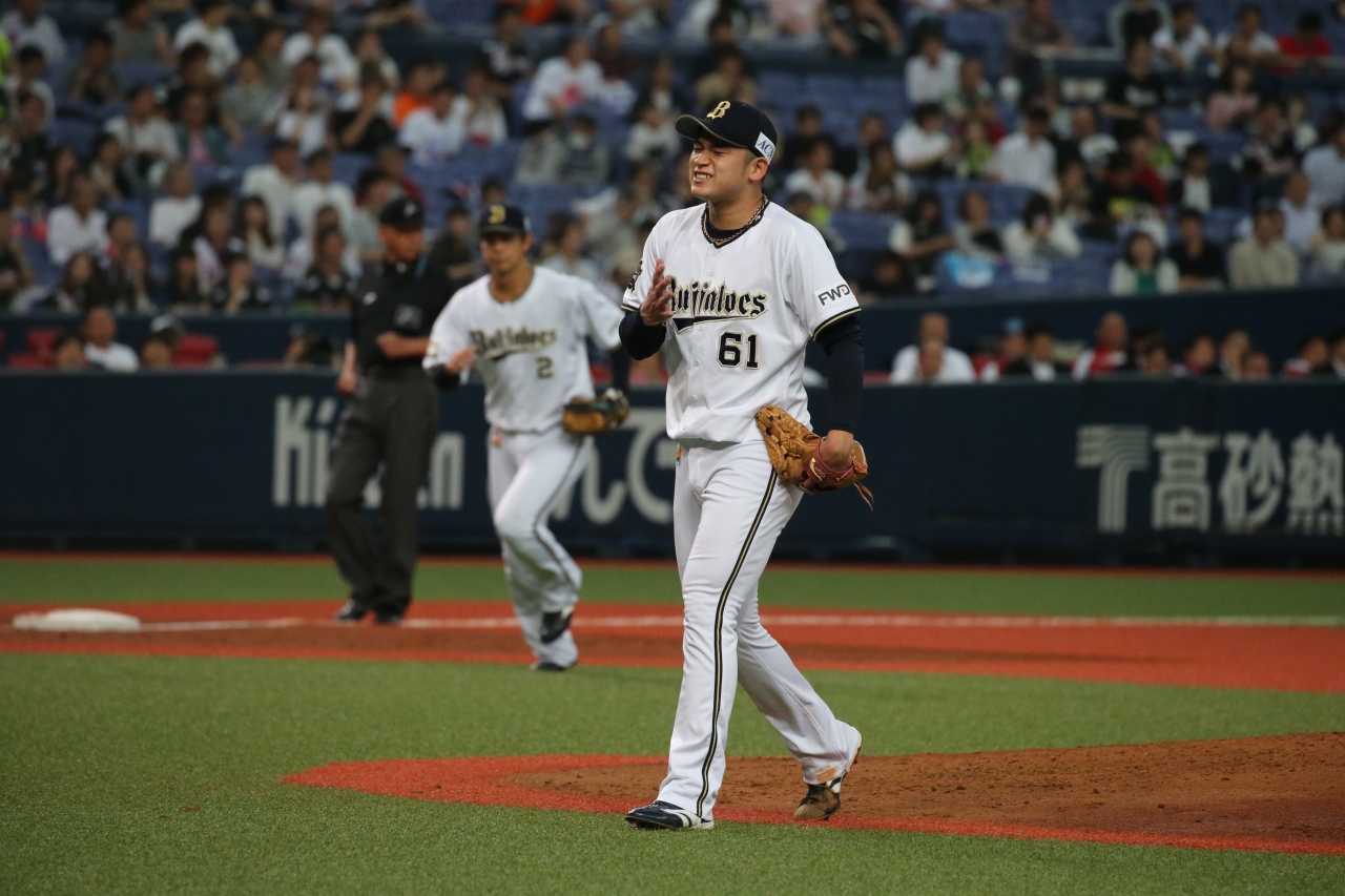 今日初めてM打線を三者凡退に抑えた榊原投手!