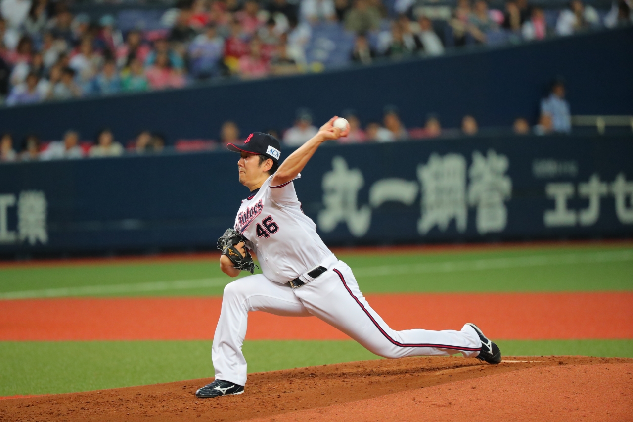 この回を三者凡退に抑えた成瀬投手!