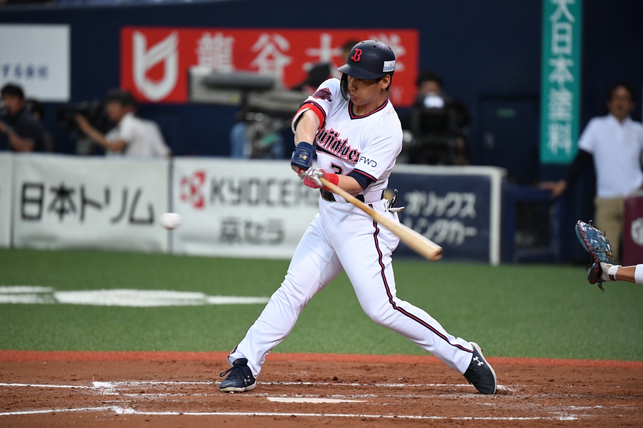 3番 吉田正 四球 フォアボールを選ぶ 1塁 |
