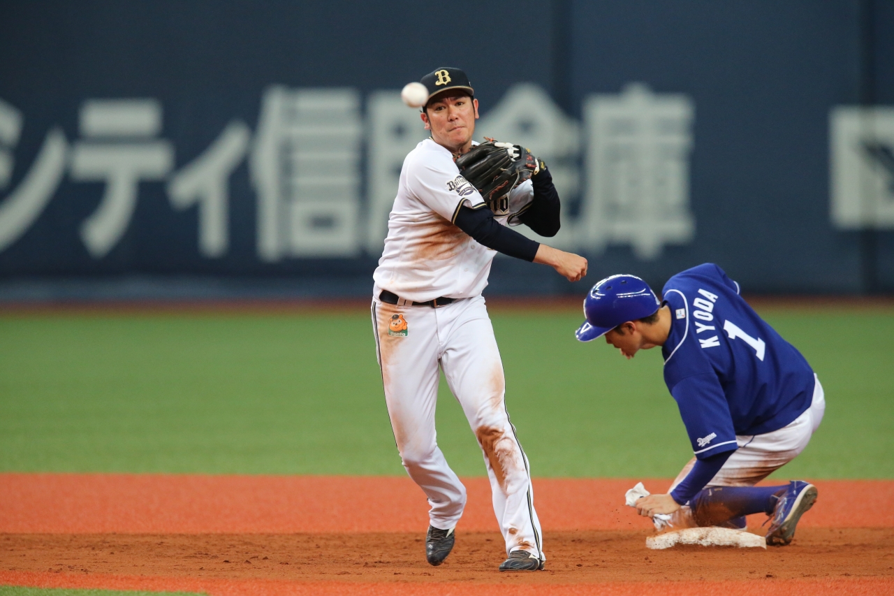 1塁へ送球し、ダブルプレーを決めた大城選手!