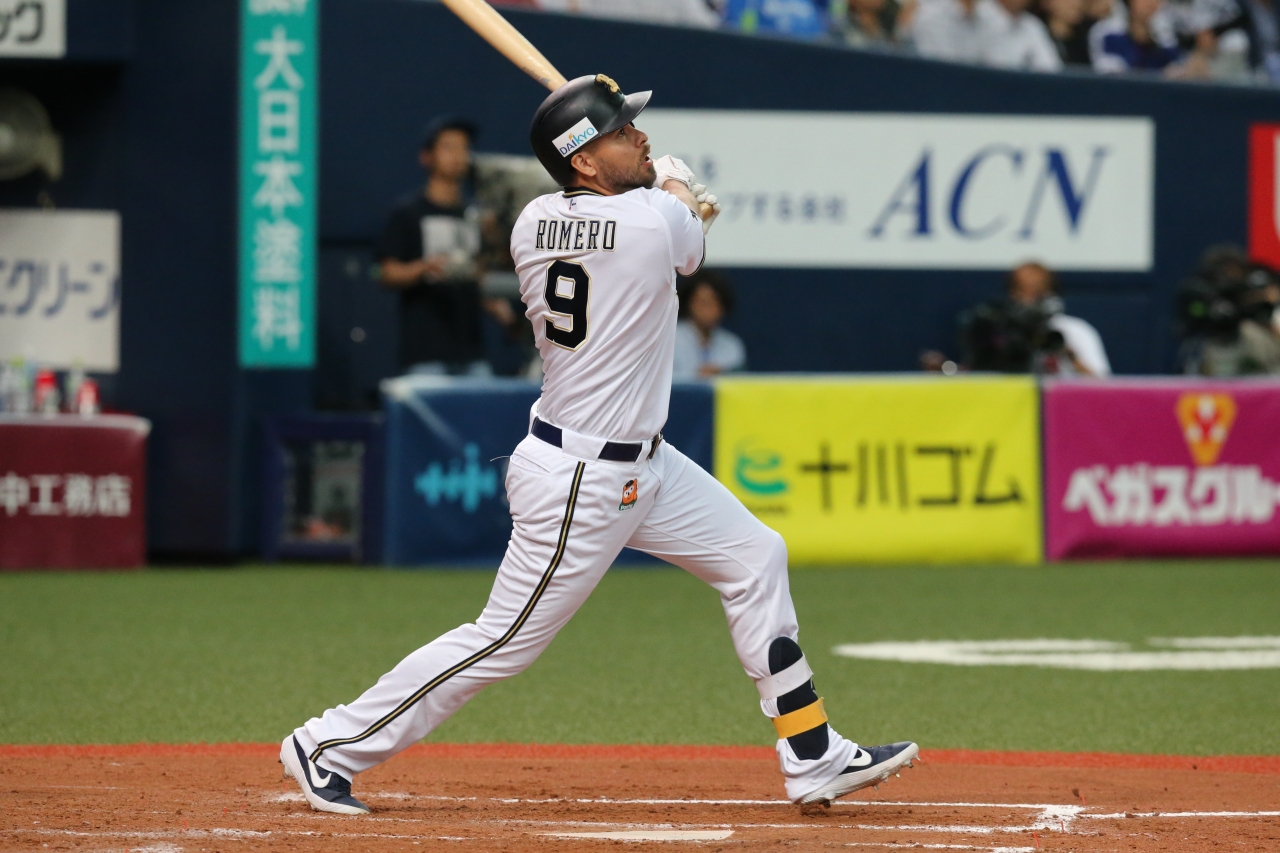 2死2,3塁のチャンスでレフト前にサヨナラ打を放ったロメロ選手!