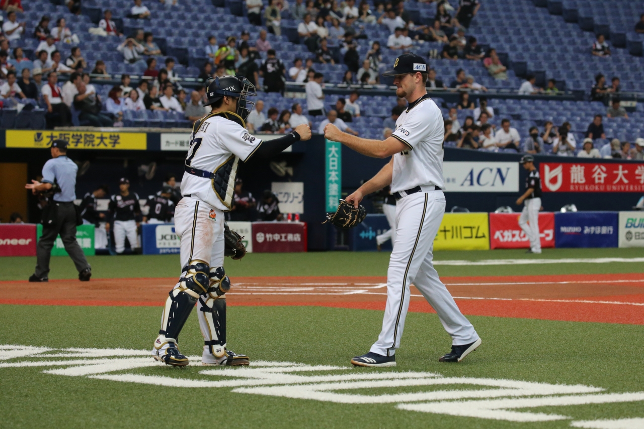 この回を三者凡退に抑え、グータッチするエップラー投手と若月選手!