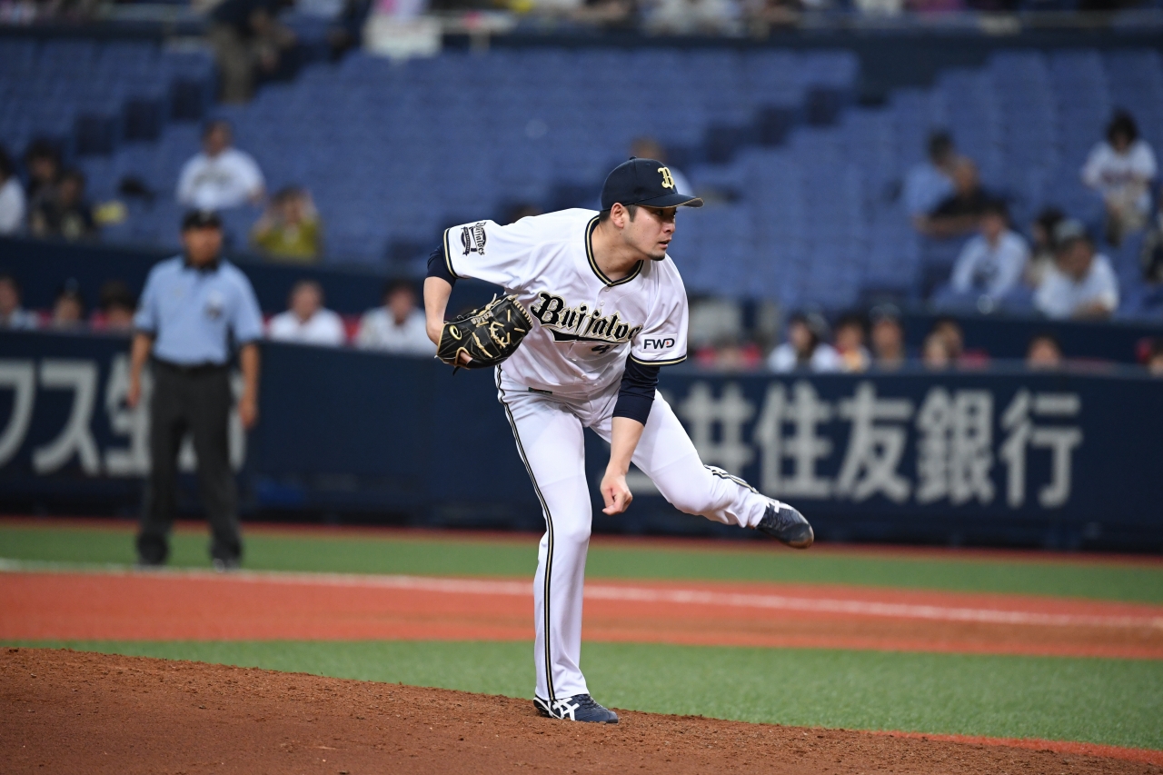 3番 吉田正 左安 ランナー2塁 外角低めのカットボールをレフトへ先制タイムリーヒット! 1塁 オ1-0ロ ![]() 1