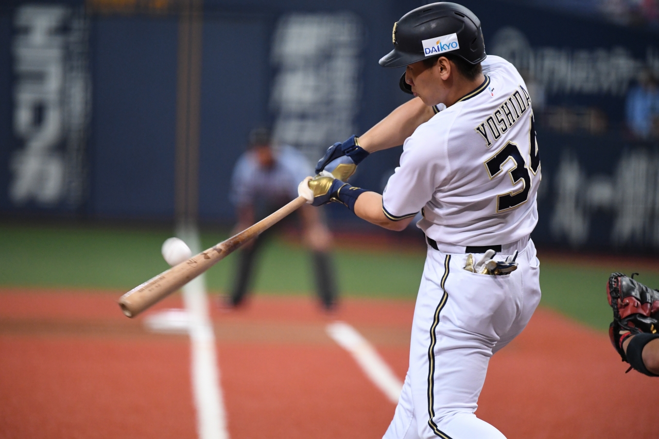 4番 吉田正 空三振 低めのフォークを空振り三振 2アウト |