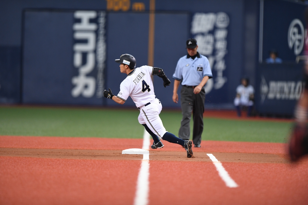 左中間への2ベースヒットでチャンスメイクした福田選手!