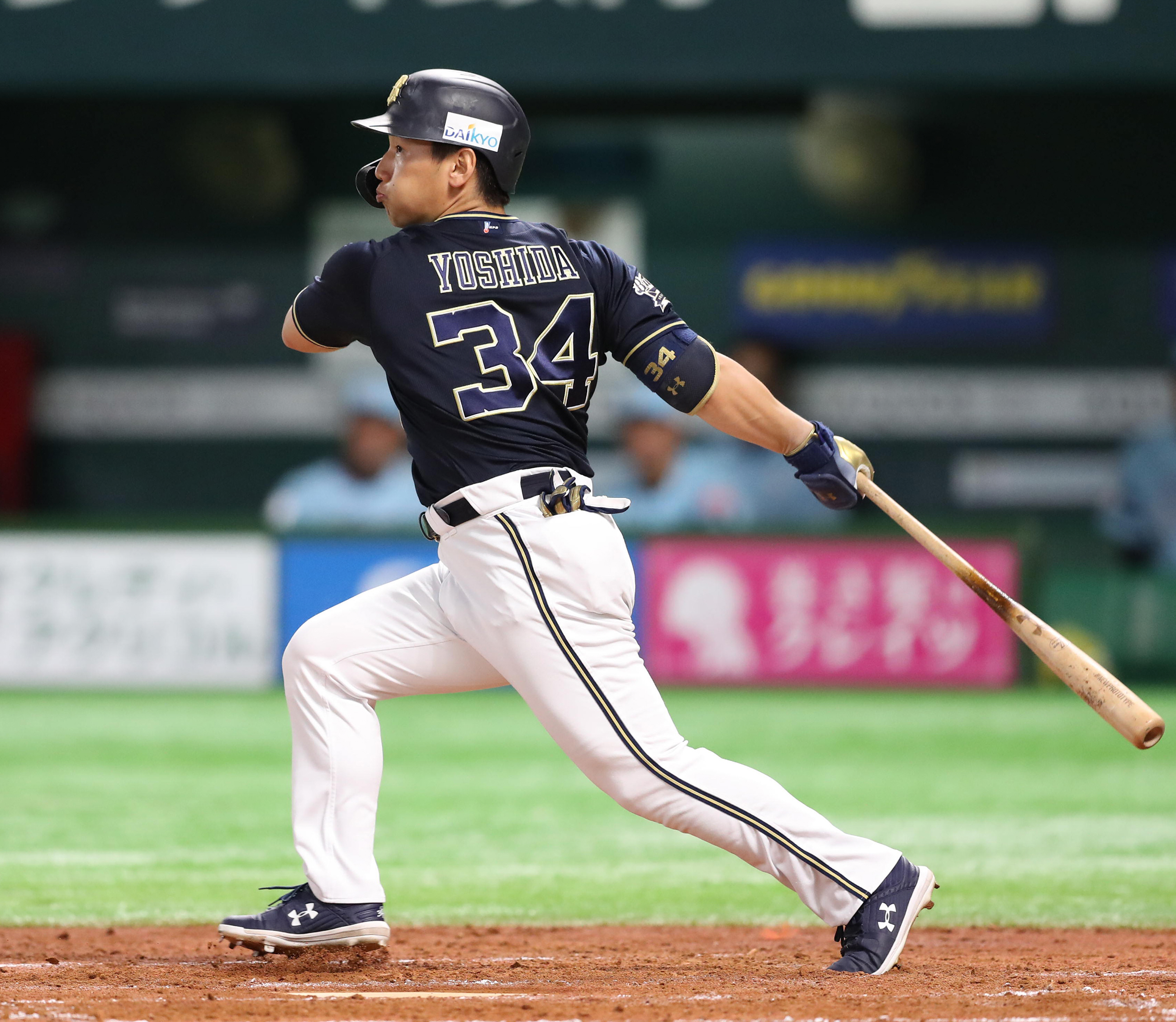 フェンスダイレクトの2ベースヒットを放った吉田正選手!