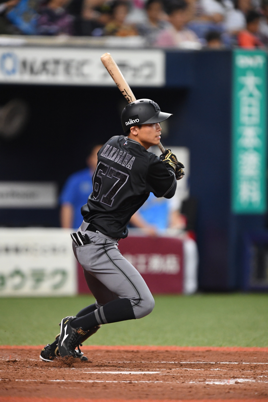 2番 外崎 空三振 内角高めのストレートを空振り三振 1アウト |