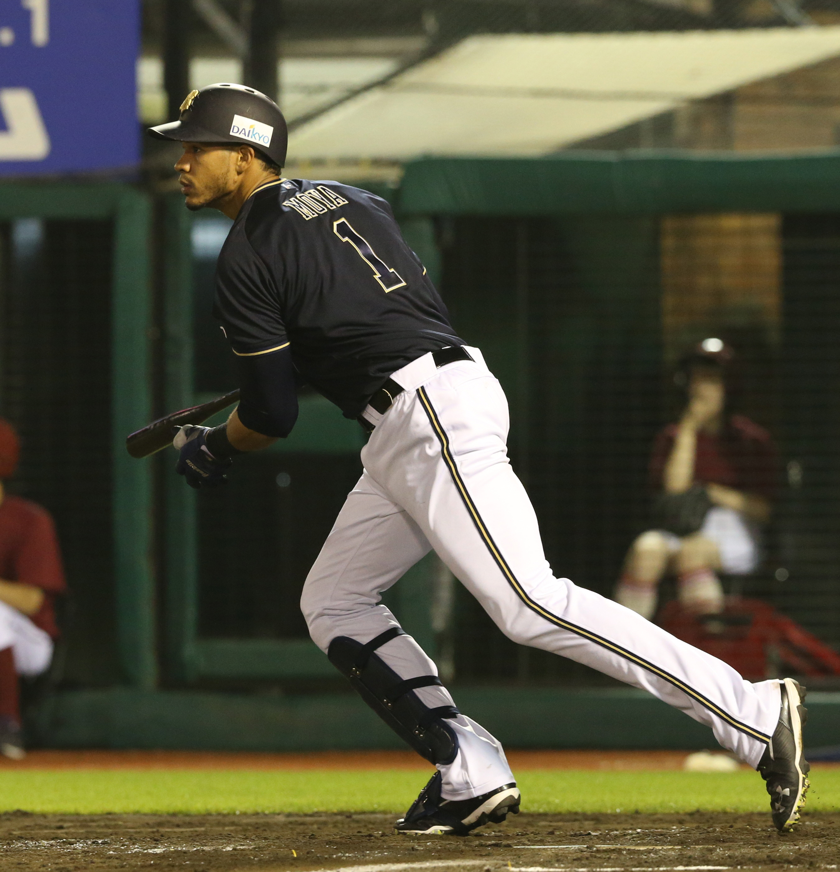 ダメ押しのセンター前タイムリーヒットを放ったモヤ選手!