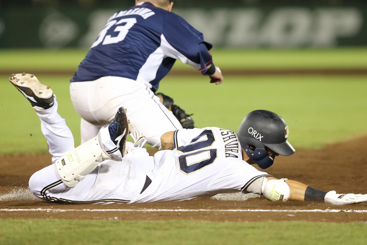 ヘッドスライディングで内野安打をもぎ取った西浦選手!