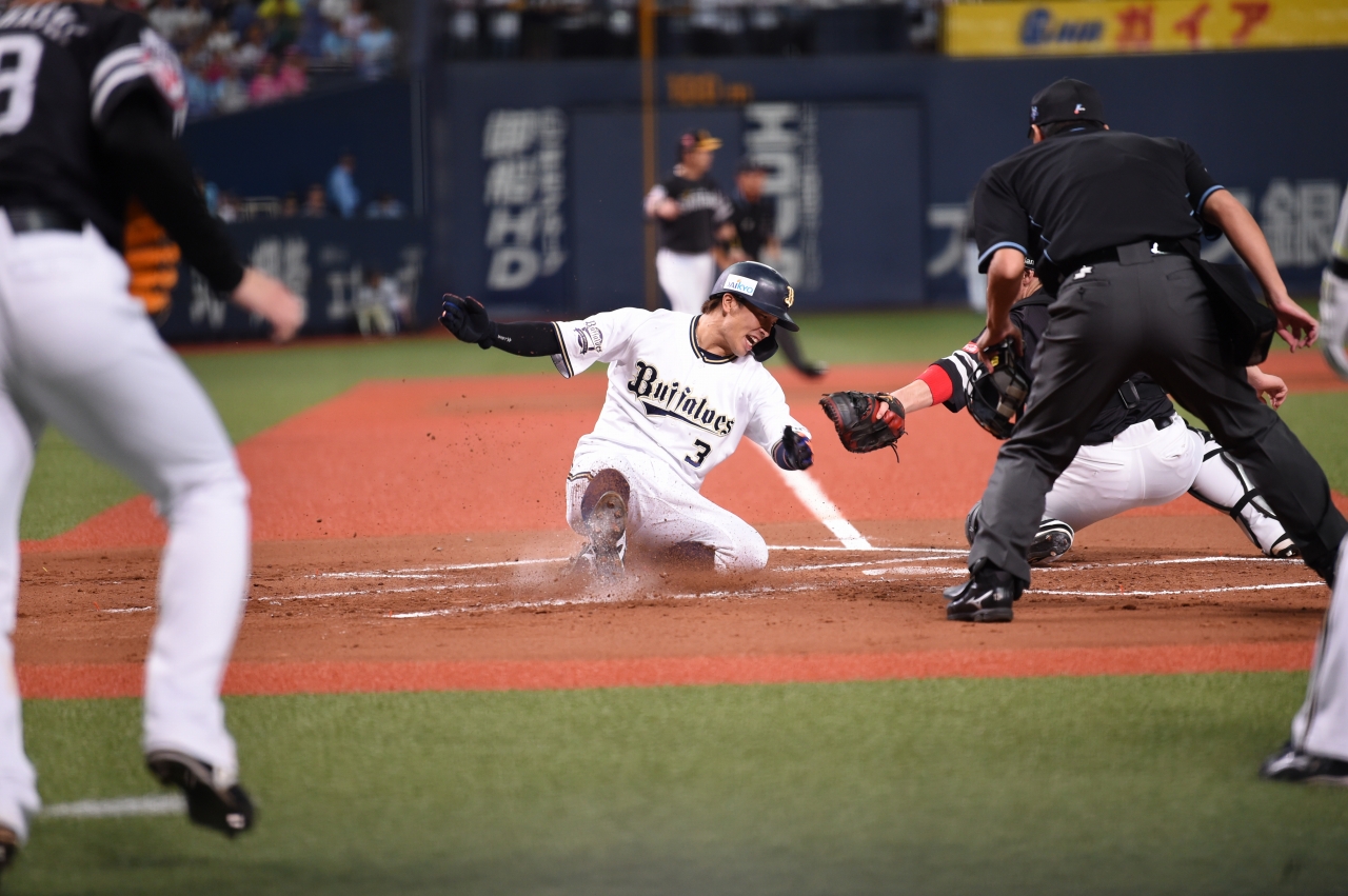 山本(投)のワイルドピッチにより進塁する 3塁 |