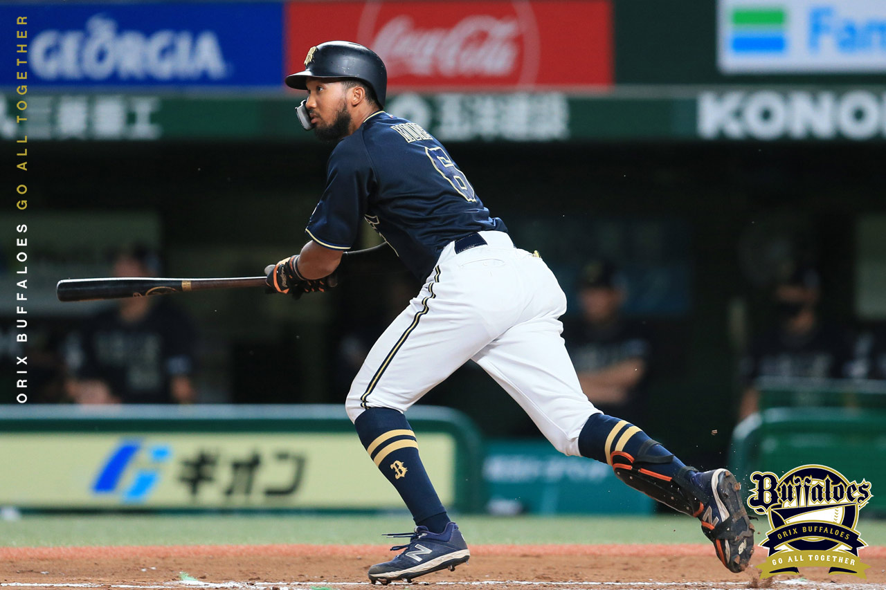 6番 ロドリゲス 左安 外角低めのカーブをレフトへ打ってヒット 1塁 |