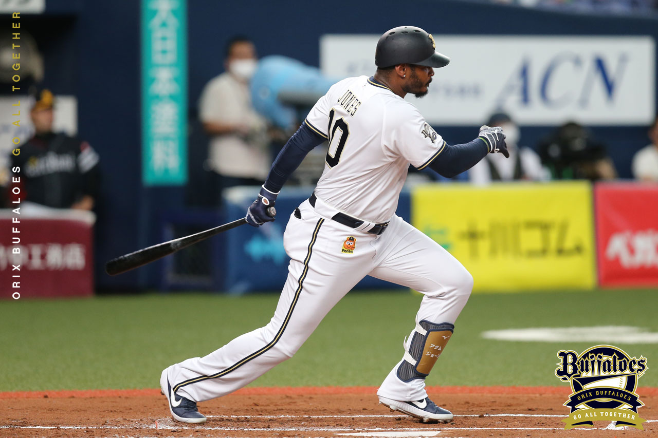 チーム初安打となるレフト前ヒットを放ったジョーンズ選手!