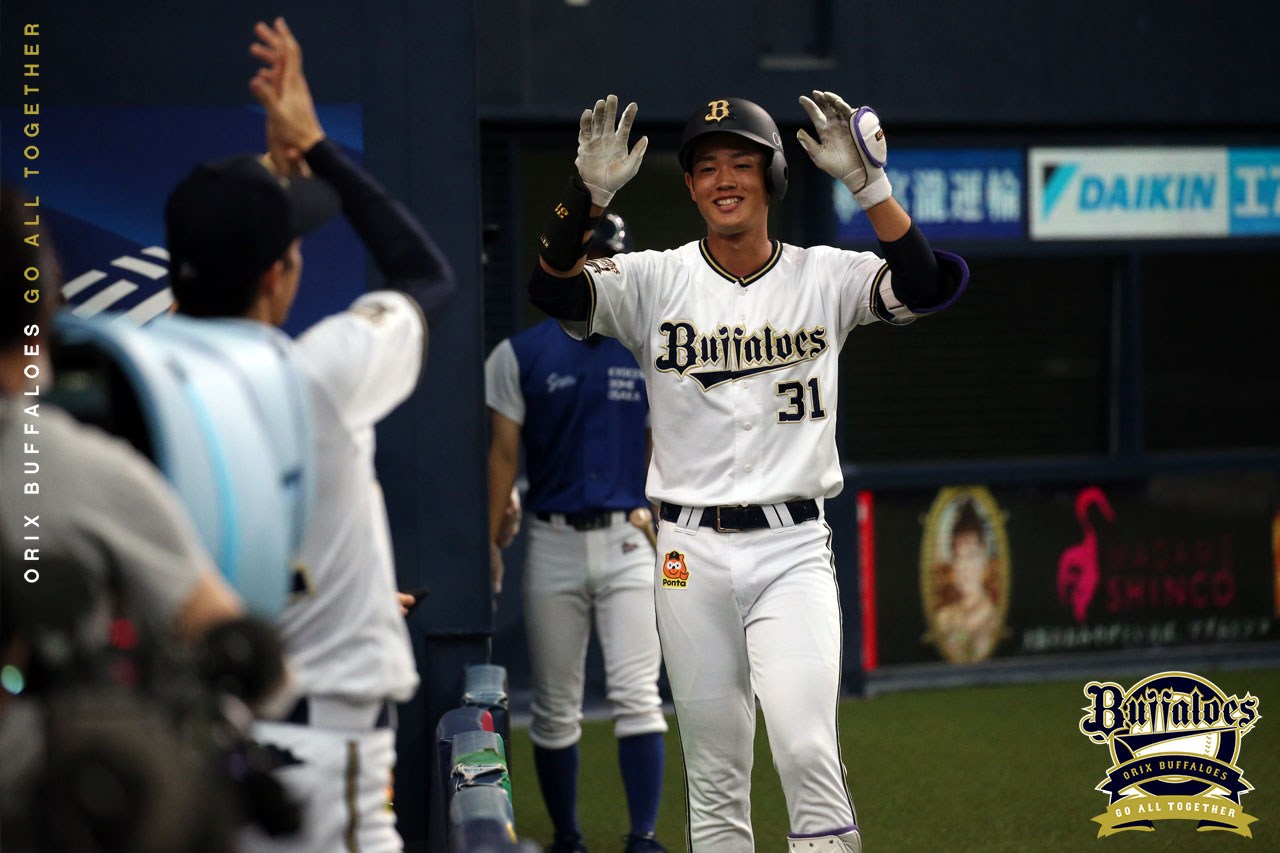投手 山崎福 1番 栗原 右2 内角のカーブをライトへ打ってツーベース 2塁 |