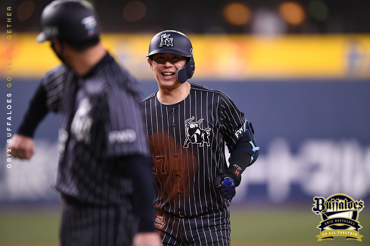 1番 角中 四球 フォアボールを選ぶ 1塁 |