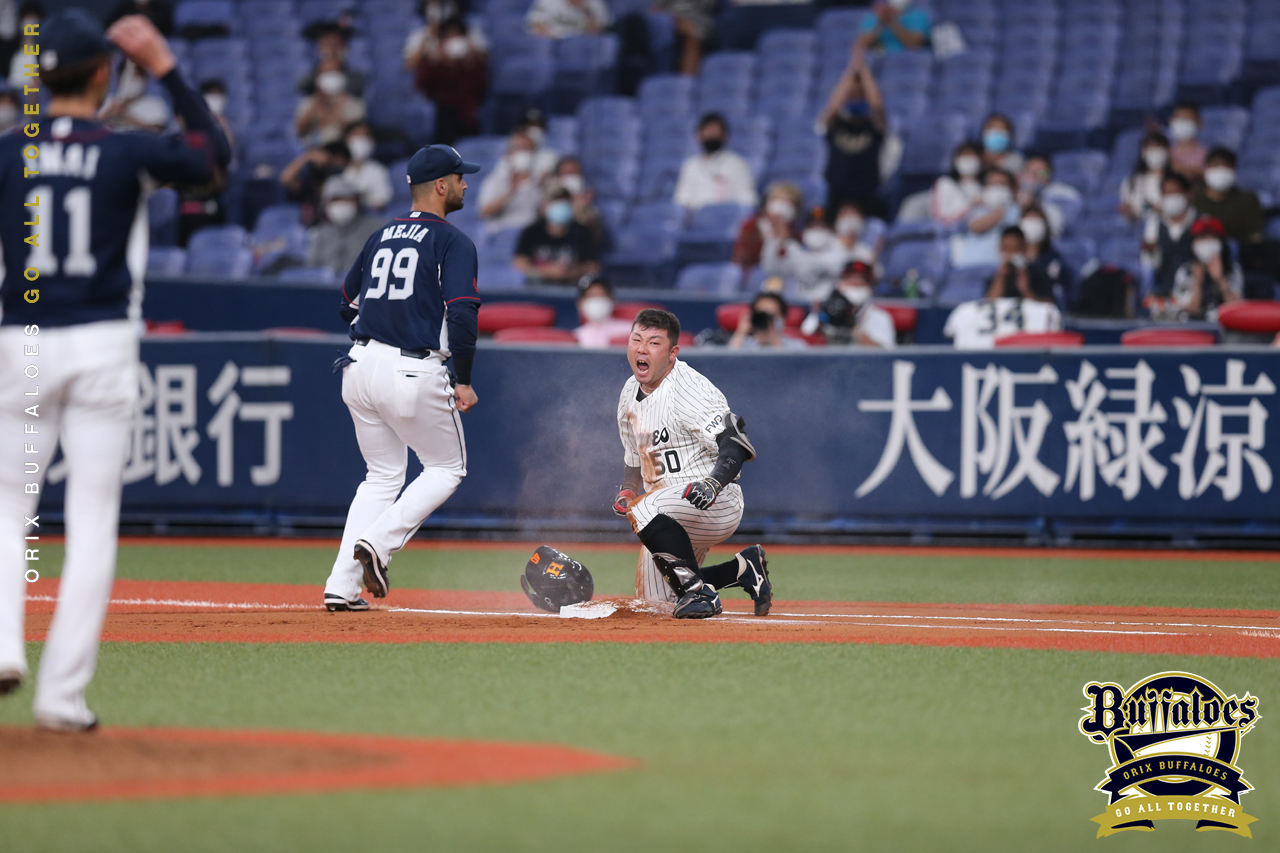 | 4番 吉田正 四球 フォアボールを選ぶ 1,2塁 | |