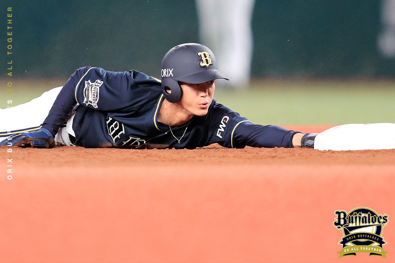 5番 モヤ 中安 ランナー1,3塁 外角低めのフォークをセンターへ先制タイムリーヒット! 1,2塁 西0-1オ ![]() 0