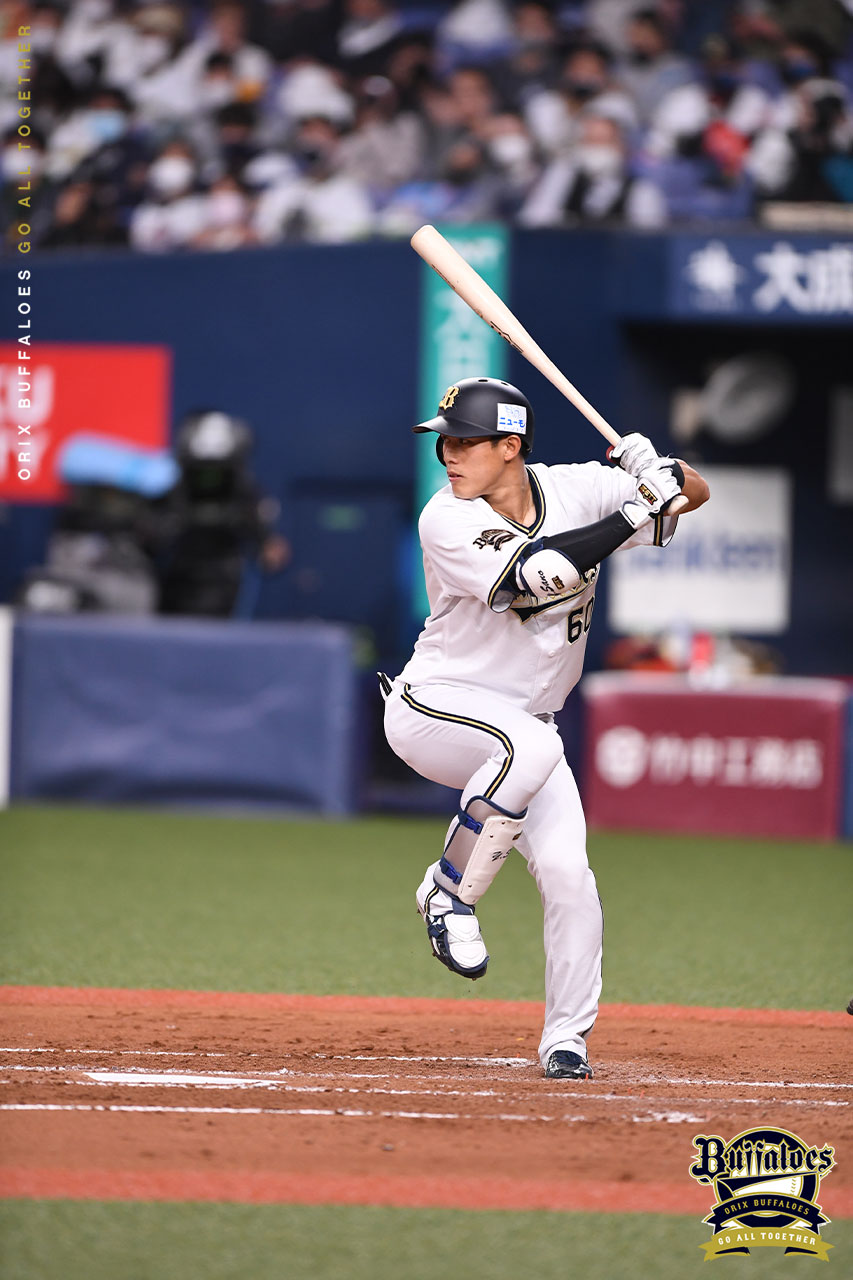 9番 紅林 四球 フォアボールを選ぶ 1,2塁 |