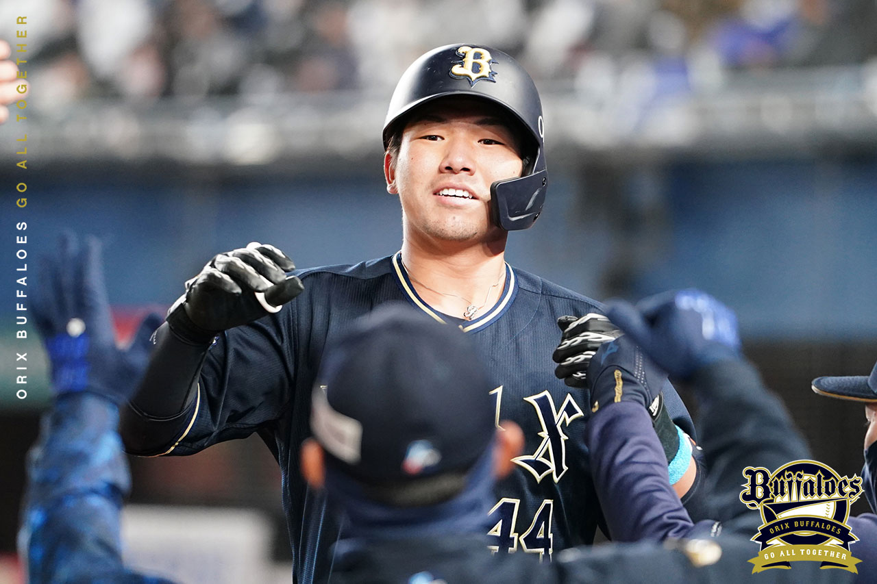 9番 紅林 中安 ランナー1,3塁 高めのストレートをセンターへタイムリーヒット! 1,2塁 ロ3-2オ ![]() 3