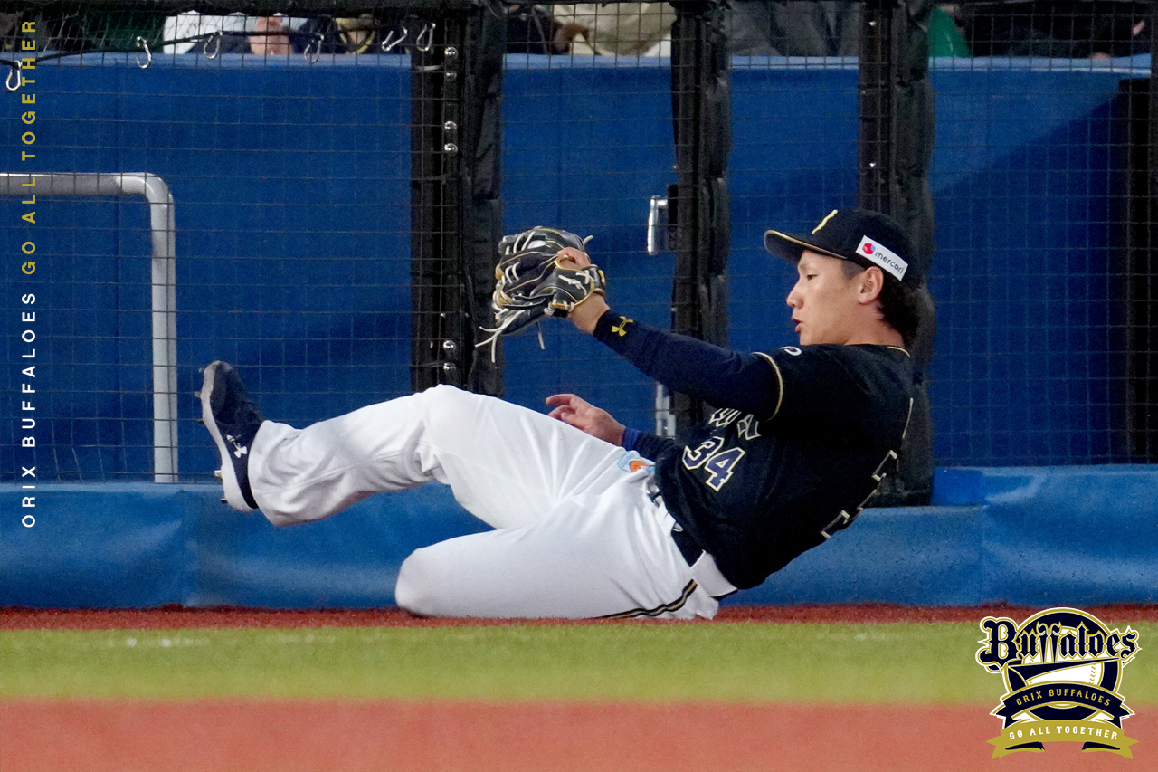 フェンス際の難しいフライをスライディングキャッチした吉田正選手!
