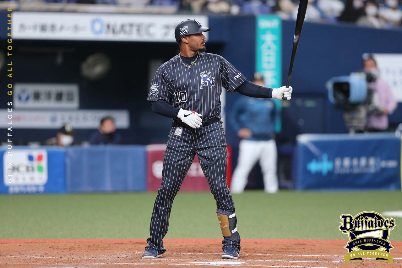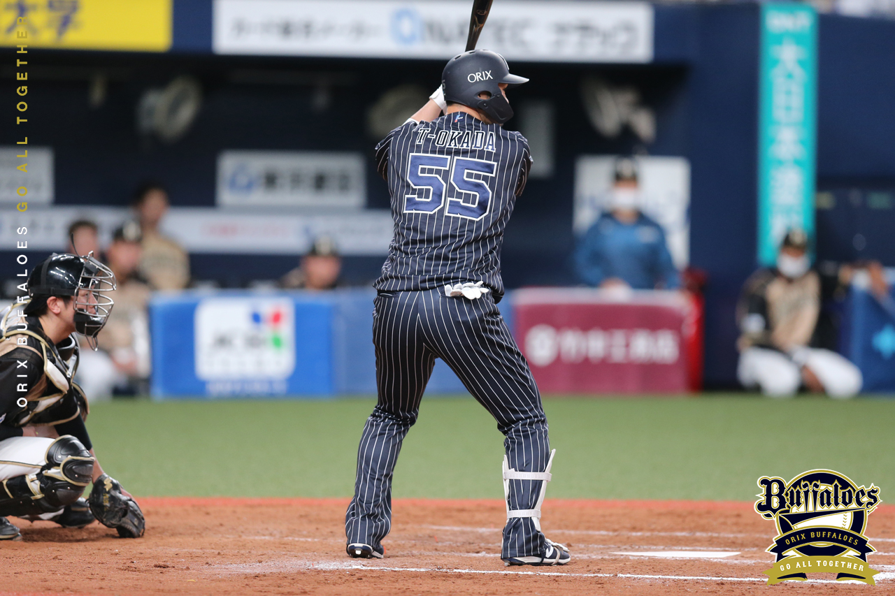 代打でセンターへタイムリーヒットを放ったT-岡田選手!