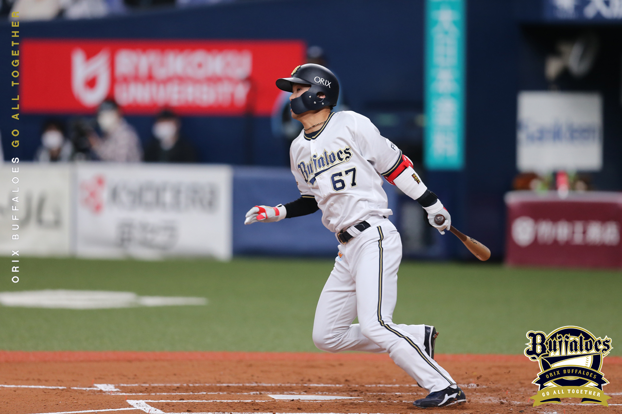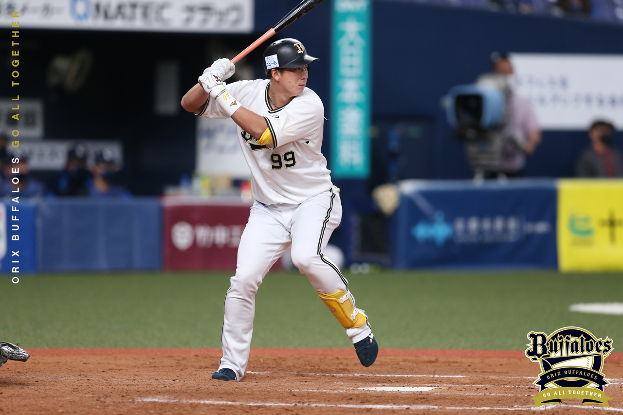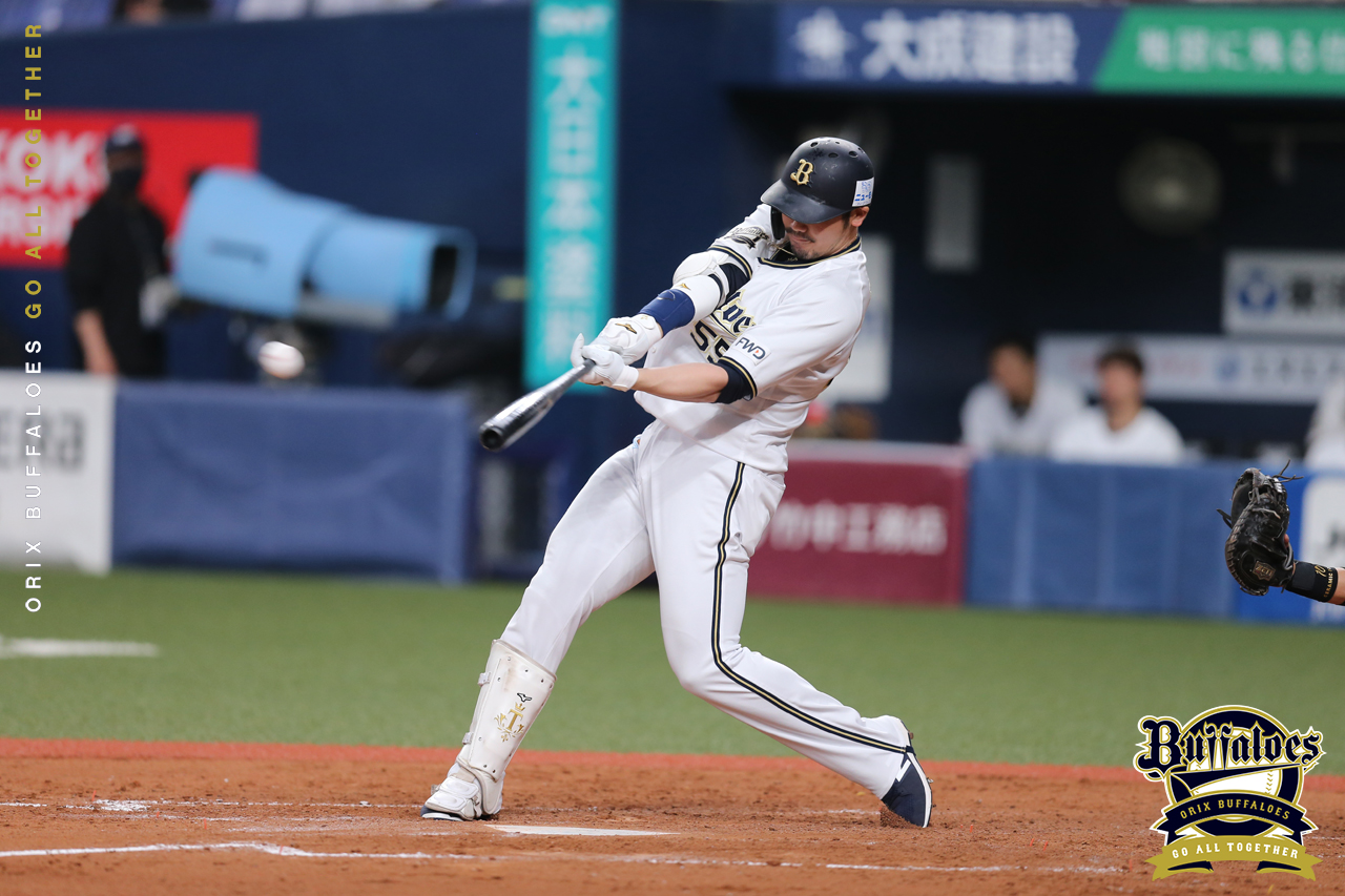 1点差に迫るセンター前タイムリーヒットを放ったT-岡田選手!