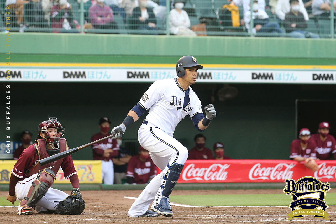頓宮(捕)の悪送球により進塁する 2塁 オ0-2楽 ![]() 0