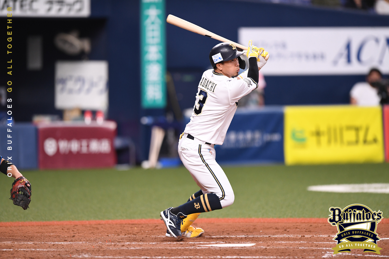 この回の得点に繋がるライト前ヒットを放った安達選手!