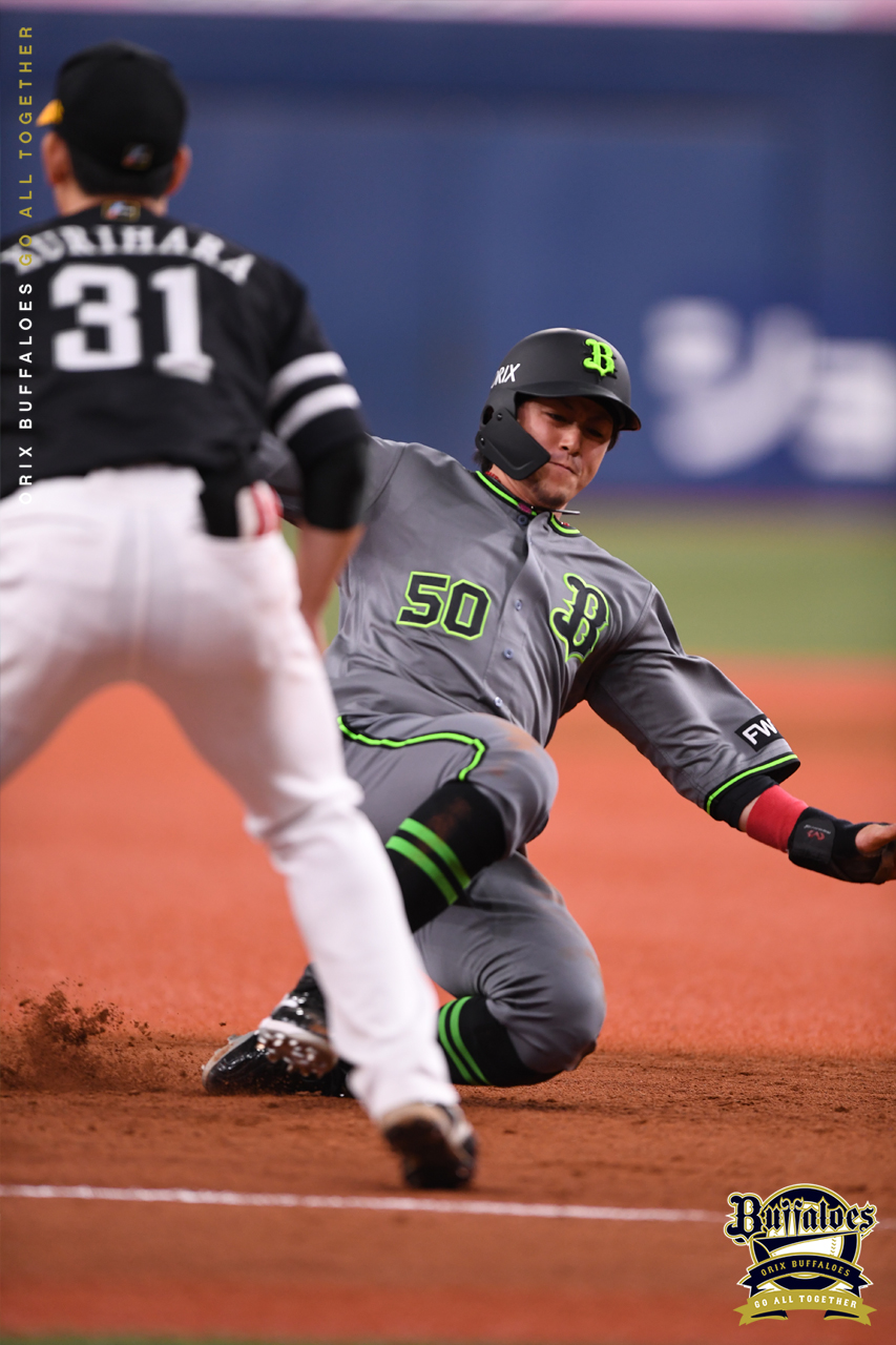 安達選手の長打で2塁からホームへ向かう吉田正選手!