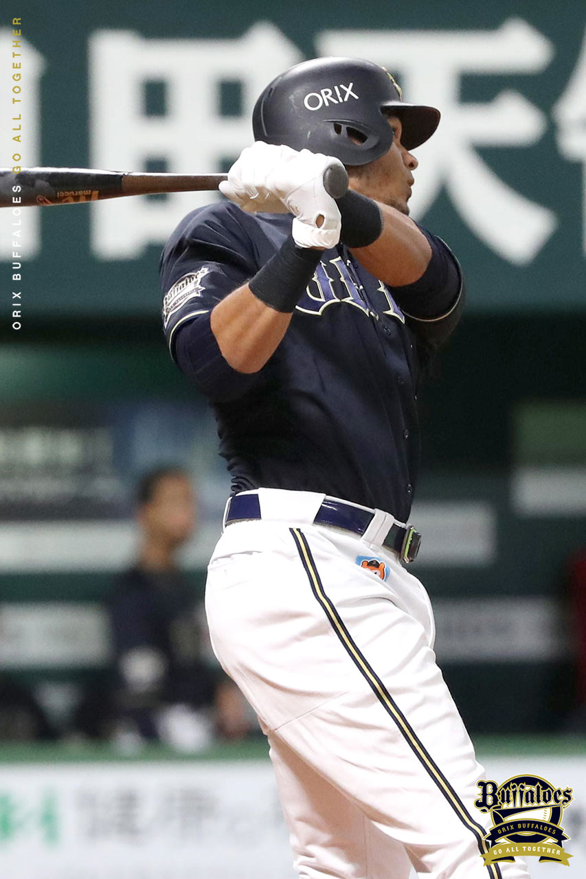 5番 ジョーンズ 中安 ランナー1,2塁 外角高めのストレートをセンターへ勝ち越しタイムリーヒット! 1,2塁 ソ1-2オ ![]() 1