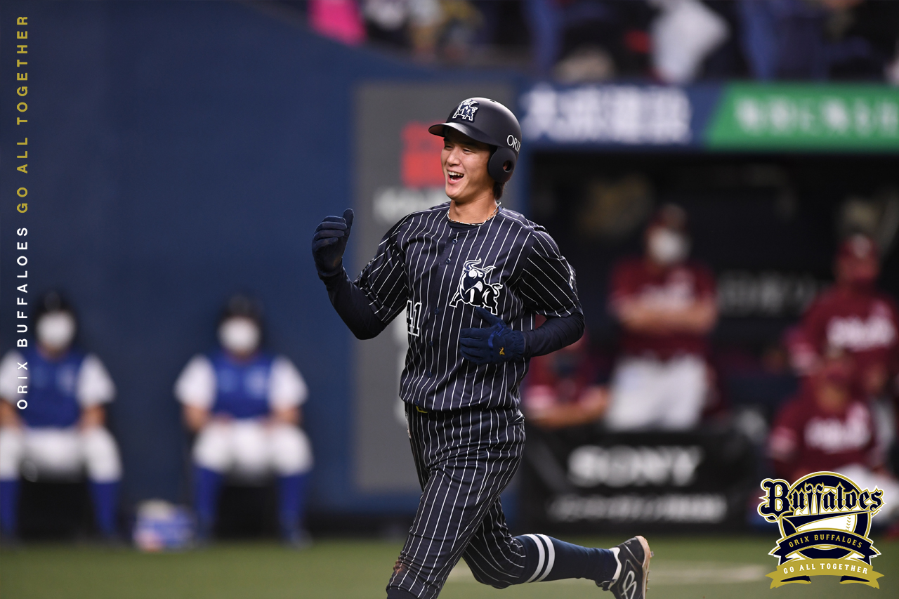 3番 紅林 左安 外角のカーブをレフトへ打ってヒット 1塁 |