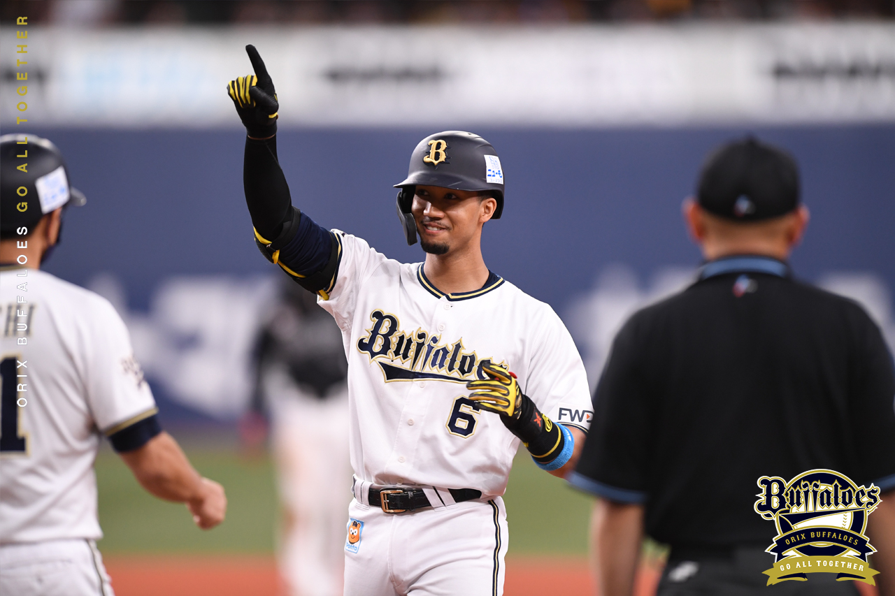 右中間へ長打を放ち、ポーズを決めるラベロ選手!