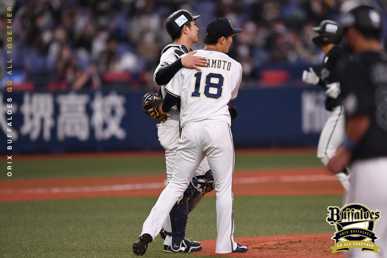 投手 石川 8番 紅林 右邪飛 ファウルフライを山口(右)が捕球してバッターアウト 1アウト |