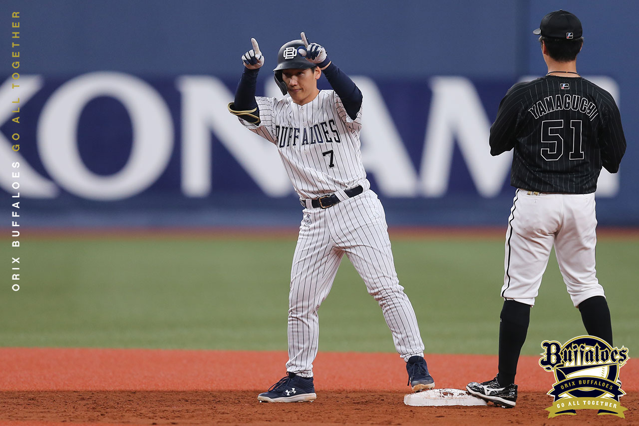 8番 松川 中安 外角のスライダーをセンターへ打ってヒット 1塁 |