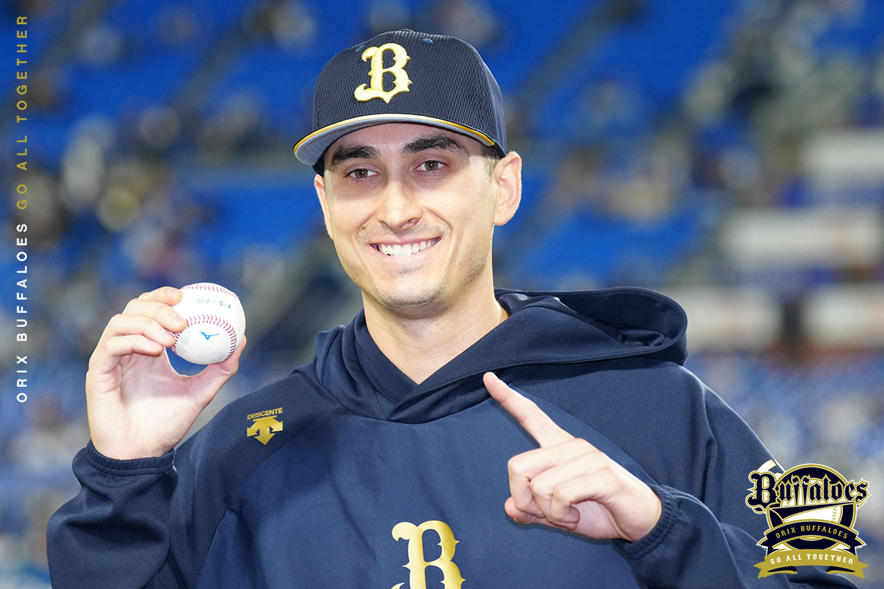 来日初勝利のウイニングボールを手にしたワゲスパック投手