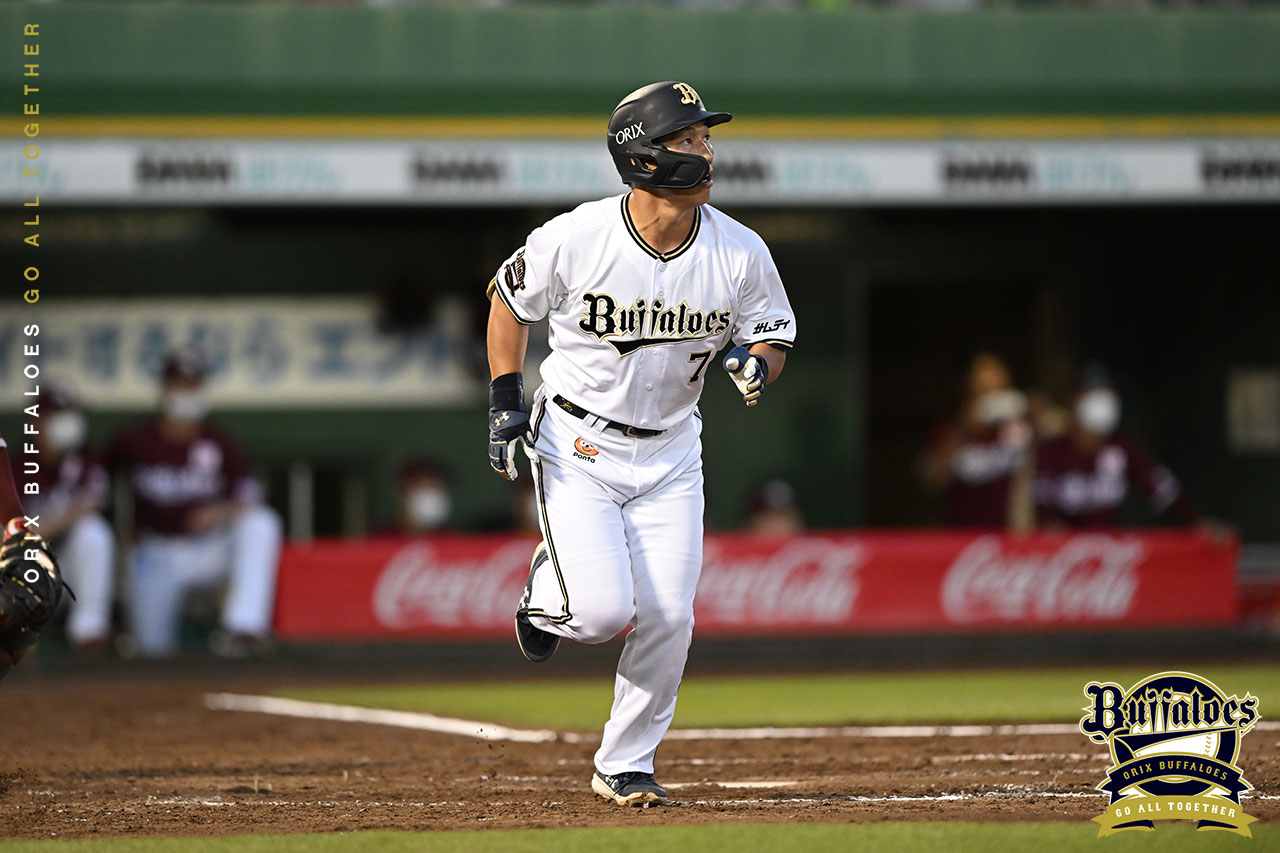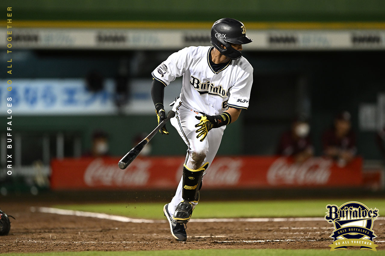 9番 紅林 左安 ど真ん中のカーブをレフトへ打ってヒット 1塁 |