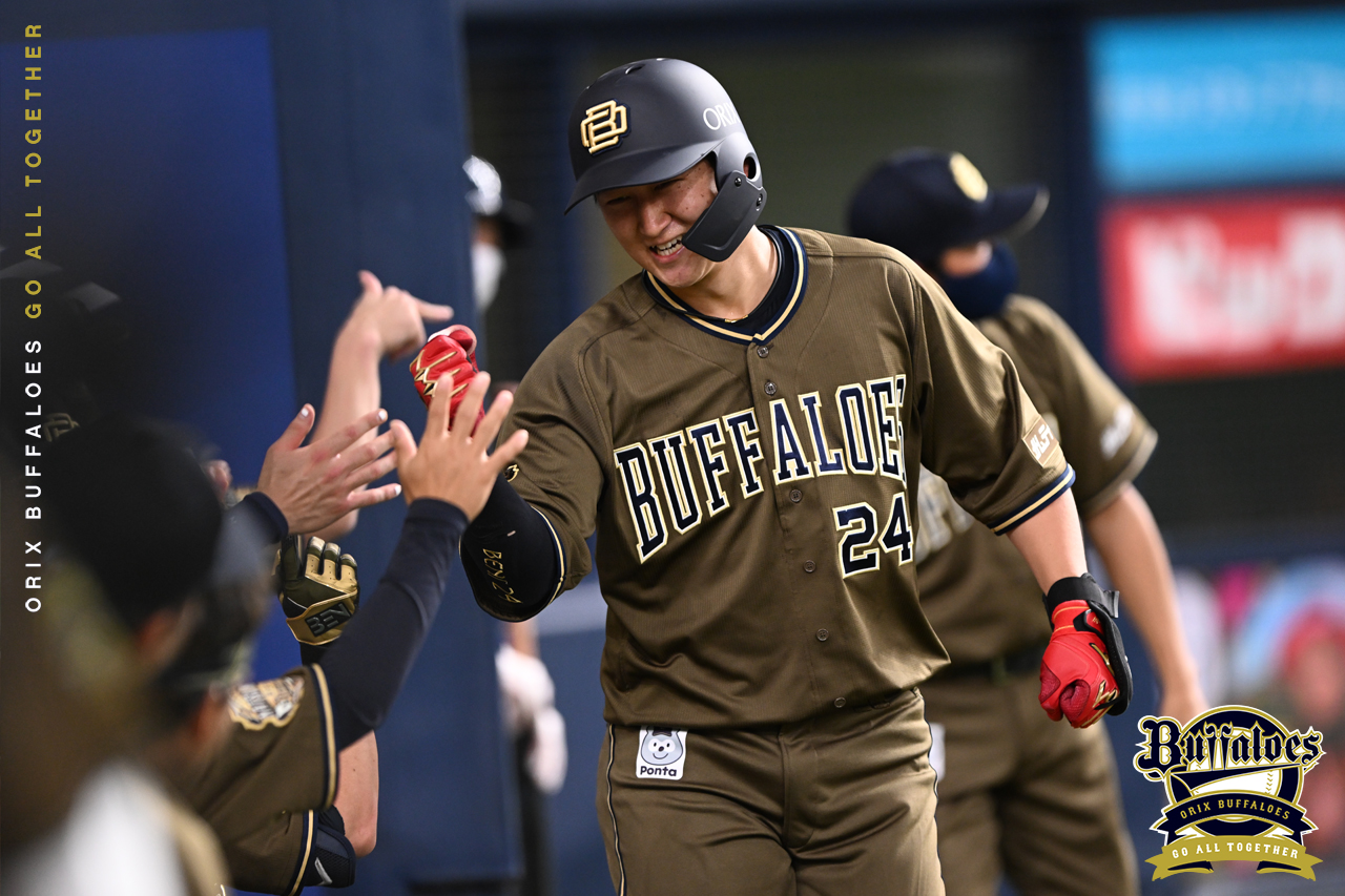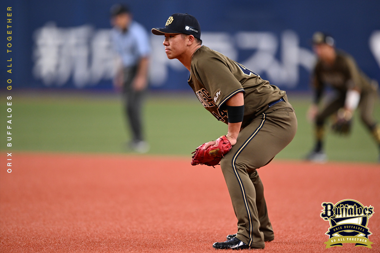 8番 紅林 左安 ランナー1,3塁 外角のカットボールをレフトへタイムリーヒット! 1,2塁 オ3-5日 ![]() 3