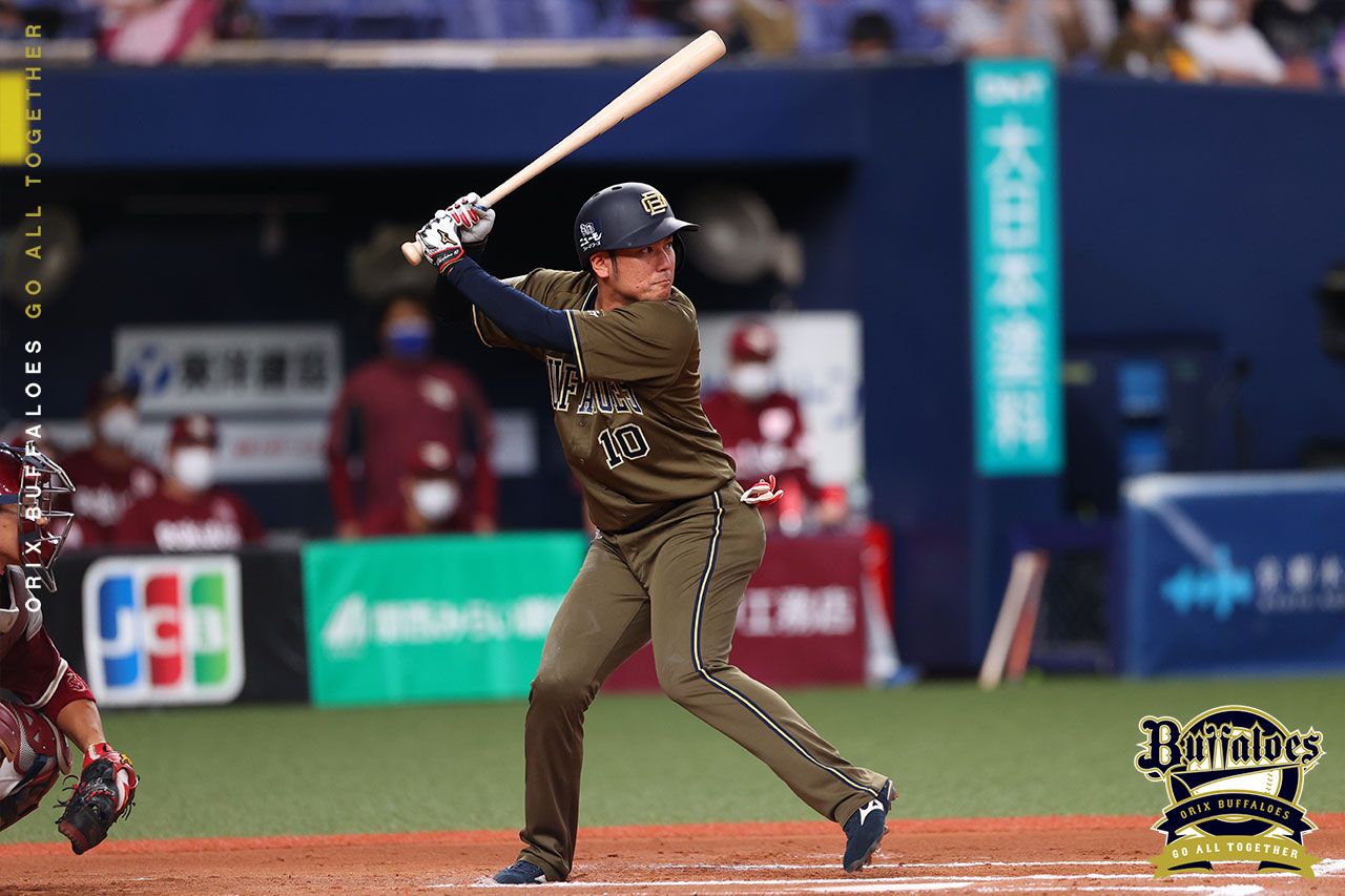 9番 伏見 右安 ランナー1,3塁 高めのストレートをライトへ先制タイムリーヒット! 1,2塁 オ1-0楽 ![]() 1