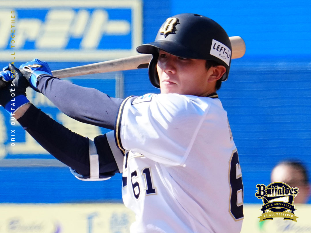 1番 藤原 左安 ランナー1,3塁 内角低めのストレートをレフトへ先制タイムリーヒット! 1,3塁 ロ1-0オ ![]() 1