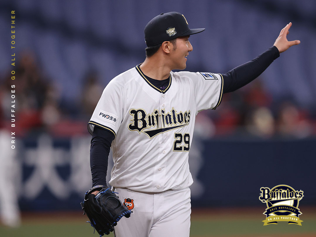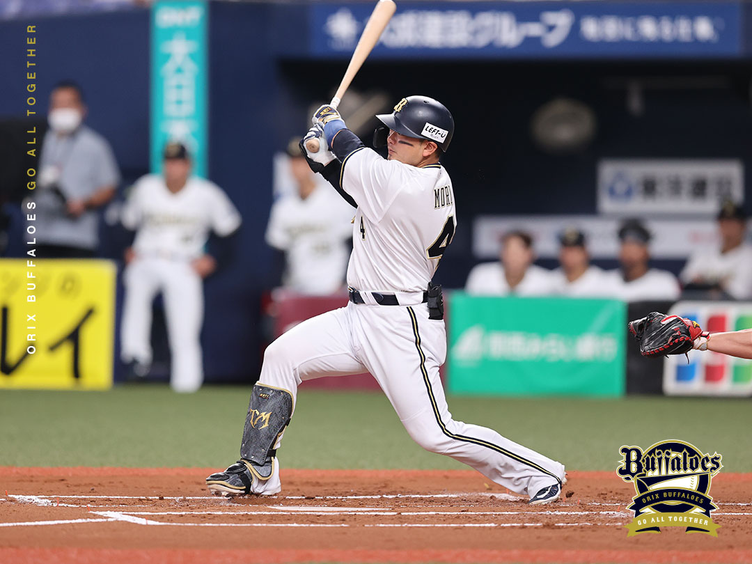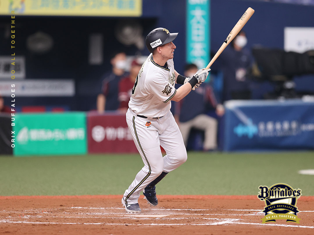 1番 頓宮 右安 ランナー2塁 内角高めのストレートをライトへ同点タイムリーヒット! 1塁 オ1-1楽 ![]() 1