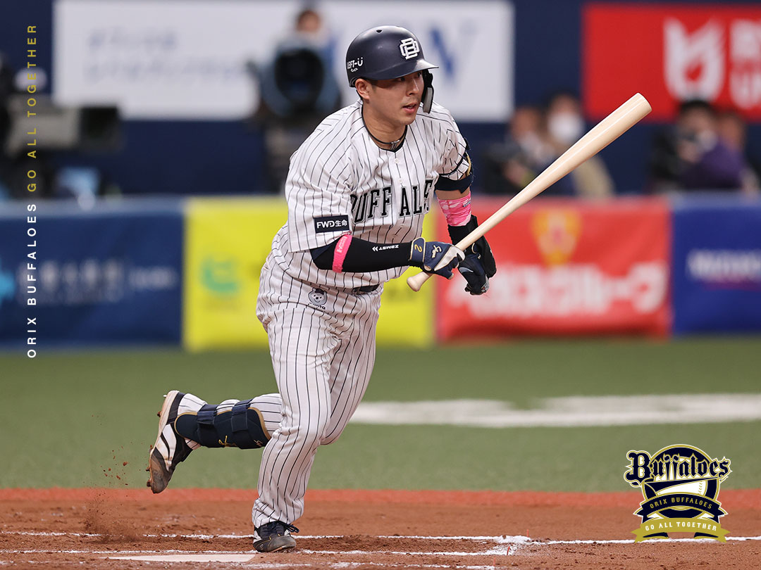 8番 紅林 四球 フォアボールを選ぶ 1,2塁 |