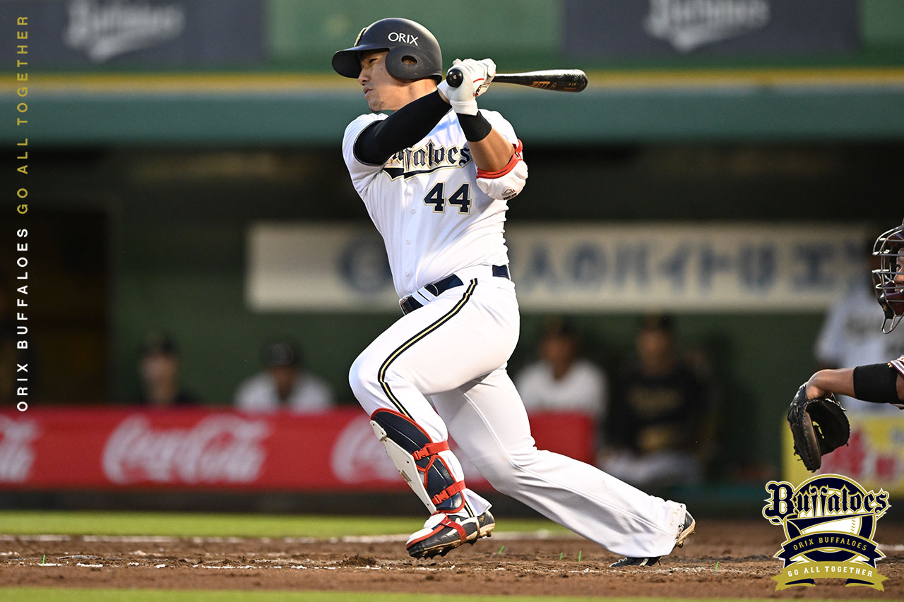 5番 頓宮 左安 ランナー2,3塁 外角のスライダーをレフトへタイムリーヒット! 1,3塁 オ5-0楽 ![]() 5