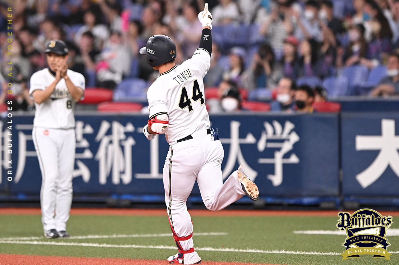 投手 バウアー 5番 頓宮 左本 カウント1-1からレフトスタンドへ勝ち越しホームラン! オ2-1D ![]() 2