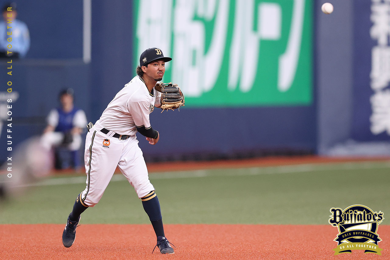 3番 紅林 左安 外角低めのフォークをレフトへ打ってヒット 1塁 |