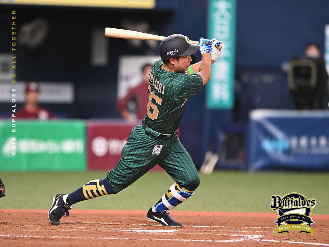 3番 紅林 左2 ランナー2塁 ど真ん中のカットボールをレフトへ先制タイムリーツーベース! 2塁 オ1-0楽 ![]() 1
