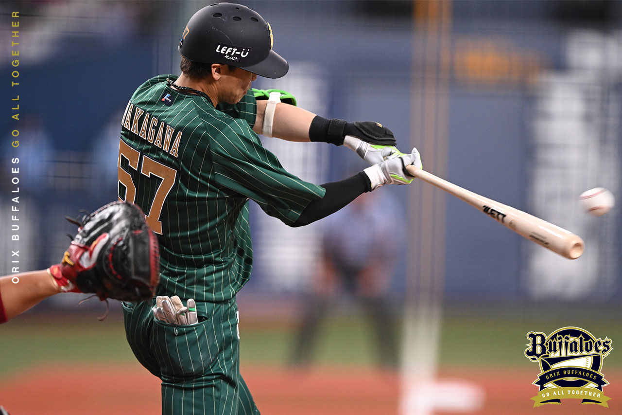 3番 紅林 中安 内角高めのツーシームをセンターへ打ってヒット 1塁 |
