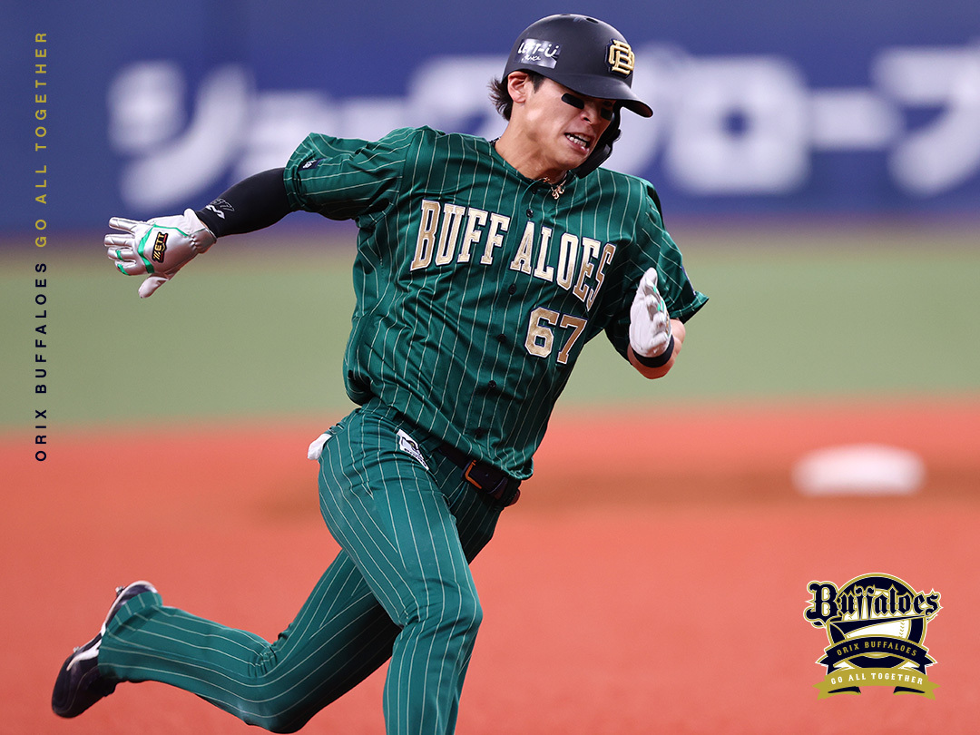 5番 頓宮 左安 ランナー2塁 内角高めのストレートをレフトへタイムリーヒット! 1塁 オ3-1ロ ![]() 3