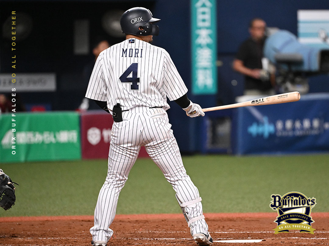 3番 森 右安 ランナー2,3塁 外角低めのフォークをライトへ同点タイムリーヒット! 1塁 オ2-2楽 ![]() 2