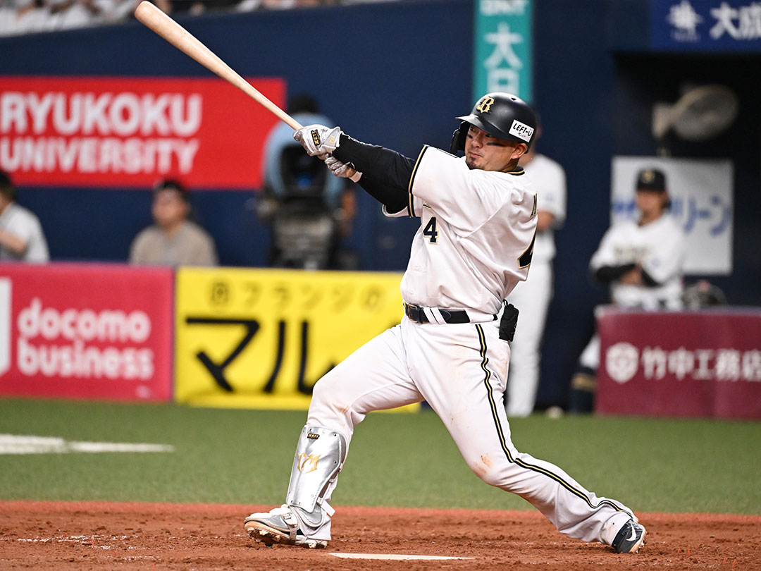 6番 紅林 中安 ランナー3塁 高めのスライダーをセンターへタイムリーヒット! 1塁 オ4-0楽 ![]() 4