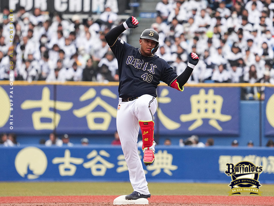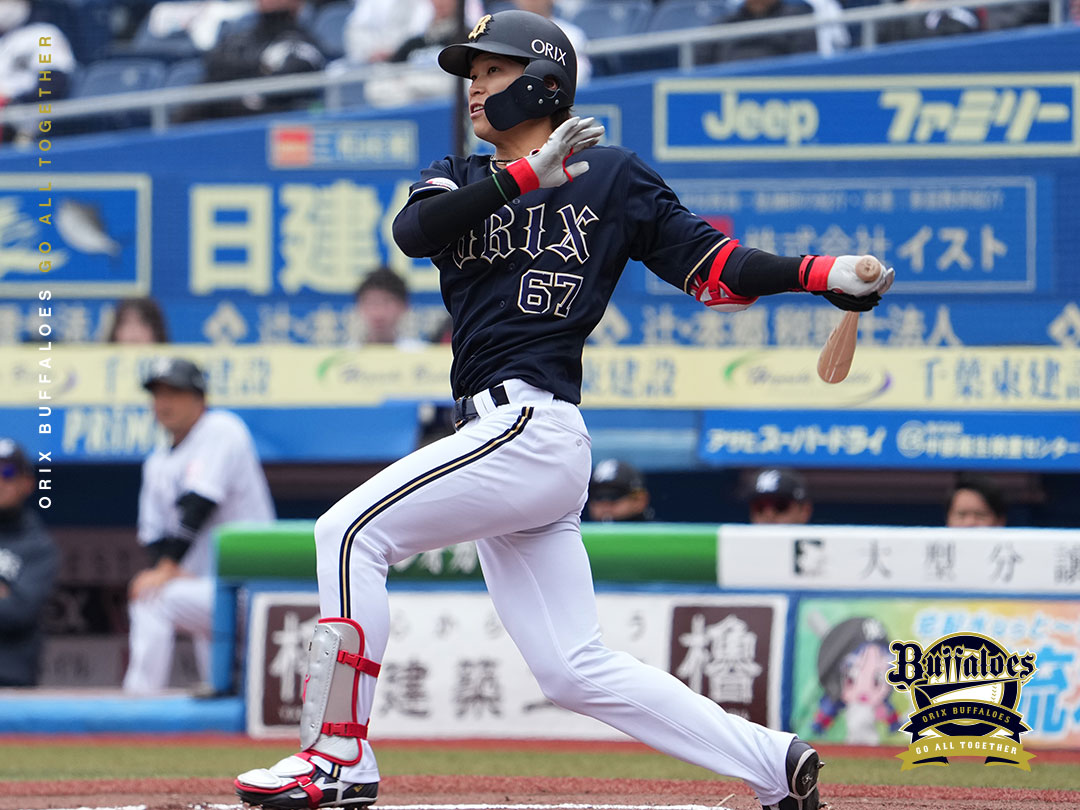 8番 紅林 中安 ランナー1,2塁 外角高めのスライダーをセンターへタイムリーヒット! 1,2塁 ロ0-4オ ![]() 0
