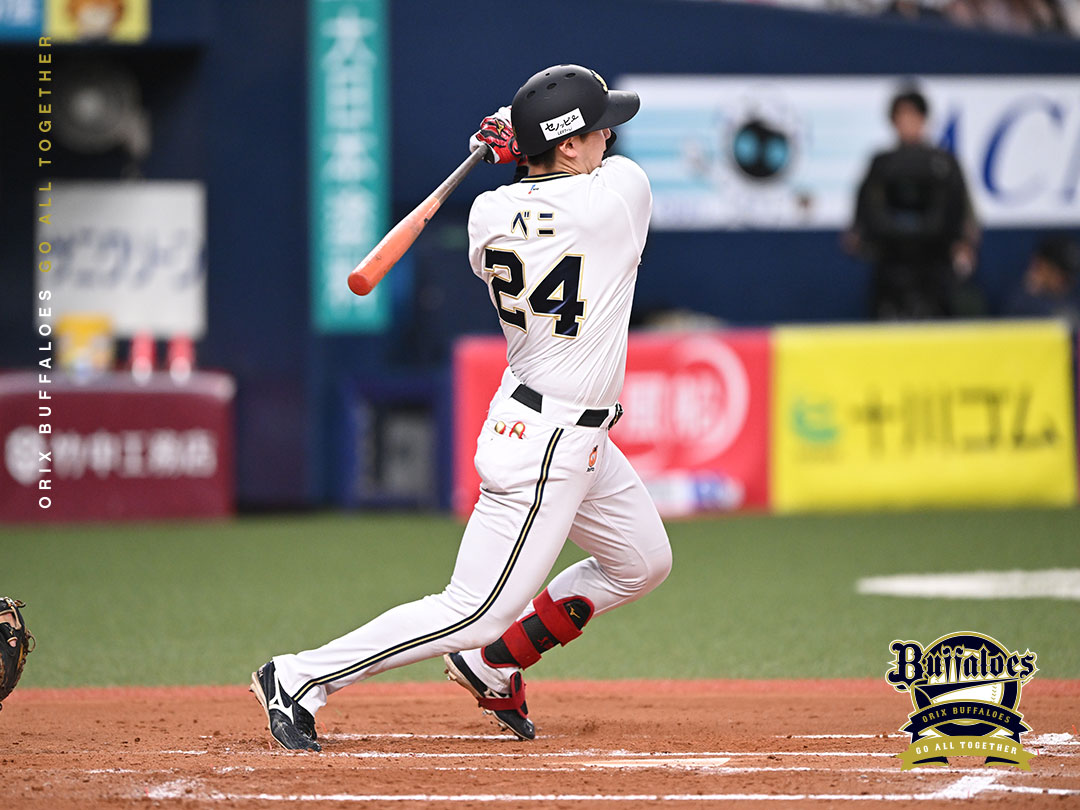 レフトへヒットを放つ紅林選手